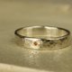 以简约的扁平槌纹戒指,镶嵌上一颗宝石进行制作