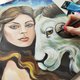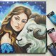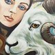 《少女与牡羊座》这幅作品描绘了一位美丽的少女站在白色的牡羊座旁边,以星空为背景。艺术家使用压克力颜料创造出明亮而饱和的色彩。这幅画是一系列十二生肖作品的一部分,象征白羊座。这幅作品描绘了与牡羊座相关的能量、力量和决心。星空的背景,强调了作品神秘、神秘的氛围。