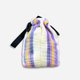 手袋系列,纯手工编织,米白色风格,清爽颜色搭配直条花纹,轻快点缀出交错的编织旋律,弹性伸缩口袋,加上黑色手提手环,颜色多彩炫目,象征独一无二的时尚与融合。