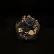 选用黑色永生玫瑰,配上黑色与金色绣球花,并以莲蓬作点缀,加上 LED 灯饰,独特的粉圆造型,剔透玲珑,清雅绝尘。适合作为送礼及摆设。