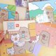 Mr. Bear and his cutie cat Postcard: Love Story Orange Orange Heart pattern 350 350 grams art paper 🖍 Printed front-back ด้าน Matte + spot UV coating