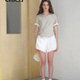 珍珠白 法式復古重工蕾絲刺繡花苞南瓜短褲 - 女装短裤 - 棉.麻 白色