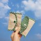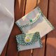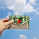 这款卡片夹采用清新的绿色格纹布料,并以斜裁工艺制作。