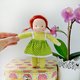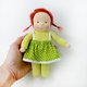 这款小巧的 Waldorf 口袋娃娃高约 7 英寸 (18 厘米),是适合小手抓握的完美尺寸。她采用环保材质制成:脸部与手臂为棉质针织布,身体为棉绒布,头发为马海毛纱线,眼睛与嘴巴以绣线绣制。娃娃的身体与头部填充 100% 有机羊毛。