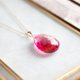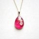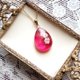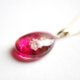 这是一款可怜的坠饰,在滴状树脂中绽放了两朵花。