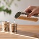 酒器表面的槌目纹理,是日本职人纯手工一次次敲击而成。自古以来锡器有“放入锡器的水不易腐坏”,或是“能去除酒的怪味,让酒变得更好喝”等说法,因此锡常用来制作酒器或茶具。