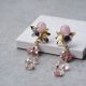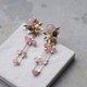 - ● 医疗级抗敏耳针、螺旋耳夹 ● 草莓晶、粉晶、石榴石、天然珍珠、14K包金花片、草莓晶链条 ● 耳环总长 5.8cm x 1.8cm