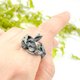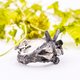 一只黑兔子静静地躲在树叶的阴影里。一幅体现宁静与故事的戒指。