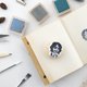 Custom-made portrait rubber stamp is designed by sketch a portrait from customer’s photography. The stamp exquisite carved by hand on high-quality rubber and affixed on wood handle. The stamp packed in tiny paper box. You can enjoy stamp and create imprints more than 1,000 times on several types of surfaces depend on which kind of ink pad you use.