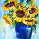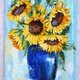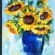原创油画,黄花油画,原创小幅面绘画,向日葵油画,现代艺术,现代绘画,小画