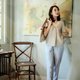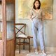 短袖亚麻衬衫,穿着舒适。搭配牛仔裤打造休闲造型。