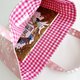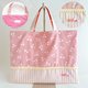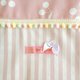 底部布料上有一个由粉红和金色线编织而成的泰迪熊名字。