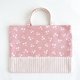 柔和的彩色绒球夹在暗粉红条纹底部布料之间。
