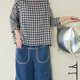 - 这款布料手感非常舒适,利用双面都可以用的布纹做了大格小格拼接,虽然版型简单但穿起来非常有日杂风味,袖子故意做长一点点没有考克收边,让你再卷起袖管的时候也可以美美的没有考克边,不论是搭窄裤宽裤窄裙长裙根本百搭款。