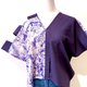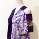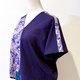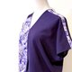这件作品融合了棉质的亲肤透气与嫘萦的轻柔垂坠,穿起来舒适又轻盈。主体配色以带蓝调的紫与藕紫灰为基底,点缀着如水彩泼洒般的另一抹紫色,既温柔也带着一丝迷离的艺术感。