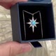 《夜空中的北极星・蓝色蛋白石纯银项链》——主石选用优质人造蛋白石,折射出如同星际般的蓝紫色幻光,搭配细腻链身,简约而迷人,是你日常的守护星。