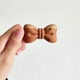 天然櫻桃木原木雕刻出圓潤的蝴蝶結,搭配古銅色的鴨嘴夾配件,在可愛和力量感之間得到平衡,經過時間的洗滌,精心愛護的蝴蝶結和配件都會更具光澤喔~