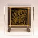 本作品是以10cm*10cm漆板为基底的,原创烙画手工莳绘漆艺创作。此作品是以花为主题,流金勾勒的线条,朱槿、百合齐开放;繁花似锦春似梦。