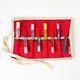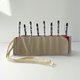 笔袋将8支笔上下各4支交错收纳,能将相邻笔之间的接触降至最低,结构不易造成刮伤。上下两侧皆附有挡片(Flap),可防止笔不慎掉落。使用时,将本体对折(山折),然后再卷起来,即可变形成一个小巧的笔筒。这是一款独具匠心、功能独特且别具一格的笔袋,能为享受书写的行为增添仪式感。