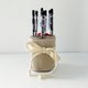 使用时,将本体对折(山折),然后再卷起来,即可变形成一个小巧的笔筒。