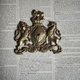 盾徽上端为头盔、圣爱德华皇冠和狮子。