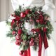红色圣诞‘ 新鲜诺贝松’圣诞花圈 Christmas wreath 推荐给喜爱缤纷节庆感的朋友,华丽满满的饰品和亮晶晶的灯饰充满圣诞节的欢乐氛围。