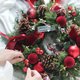 ‘ 新鲜诺贝松’圣诞花圈 Christmas wreath 以新鲜各式松柏类与天然松果为主要素材作设计,花圈是由花艺师将叶材剪枝分类出合适的长度,使用花圈专用德国铁丝捆绑在藤圈上做成圆形的花圈基底,再装饰各种圣诞节庆感的饰品,请选择您想要的树款基底:“台湾雪松”或是“进口诺贝松”