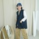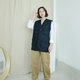 WHITEOAKFACTORY Timmy multi pocket safari cargo loose vest coat with pleated back - Navy blue (Free size)