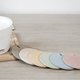 | SET OF 6 PASTEL COLORED COASTERS MADE FROM OUR RECYCLED MATERIALS. THIS WORK CAN BE ASSEMBLE INTO A CUTE LITTLE CACTUS PLANT. |