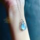 晶体通透明亮,接近玻璃体。颜色是高蓝,冰透而蓝十分珍贵。戒面清澈如海水,转动时会呈现荧光,它仿佛有一种魔力,能够安抚浮躁的情绪,让人更为沈着冷静。