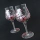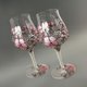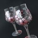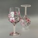 手绘郁金香酒杯 2 件组。浪漫花卉设计,珍珠浅粉红色、石墨黑和金属灰紫色。饰有紫水晶施华洛世奇水晶和许多较小的水晶水钻。玻璃表面呈现柔和的雾面效果。一款独一无二的酒杯,可立即出货!