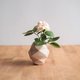 - A pentagonal single-flower vase The motif of this piece is origami. I use a technique called "casting," in which muddy clay is poured into a mold and formed. The clay is mixed with glaze and molded, and the surface is polished after firing. The result is a smooth texture unique to porcelain clay.