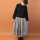 复古欧洲乡村灰蓝色条纹碎花厚棉布宽松古着长裙-SK066