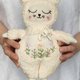 Toy cat handmade. A child's toy. Boucle and flax. Kitty.This beautiful banny is completely handmade and a true one of a kind. are custom designed, cut, and sewn, an original in every sense.Most importantly, she is authentic and will do a great job improving the creativity and imagination, two qualities that are so important to have. Material: plush, cotton, embroidery, hypoallergenic fiber filling. Height 26 cm . Boucle fabric and linen. The face and tummy are embroidered by hand Please hand wash /air dry due to wool stuffing. Thank you! For children over 1 year old!!!