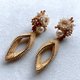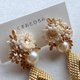 金色染色的つまみ细工小花,点缀着 Akoya 珍珠与黄水晶,整体散发出华丽而典雅的气息,是一款专为成熟女性设计的耳环。