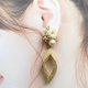 由珠饰作家 HIROMI OOISHI 老师精心制作的金色珠饰叶片,与 kumakumao 的つまみ细工小花巧妙结合,共同打造出这款别致的饰品。