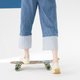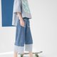 - 此款棉牛仔非常适合炎热的夏天, 不仅伯还水洗得很软, 侧边也设计没有缝线, 穿起来亲肤又舒适, 本身布料就是适合有点皱感, 很休闲的款式, 下摆拼接蓝白相间的线条, 贴式口袋也跟下摆布料相呼应。
