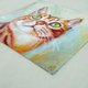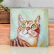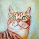 This is a oil painting with cute cat will be an original gift for pet lovers. The cat illustration will be an original wall art for your home. The funny animal art is bright colors, vibrant emotions, good mood. In a word, all that is so desirable to give a loved one. This cat portrait will suit any nursery. The art painting of funny cat will please the owner every day.