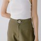 单颗天然贝扣画龙点睛,微宽管剪裁拉长腿部比例,修饰腿型同时穿出气场。