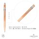 |迷人的温和暖色 |淡橙到深橙的交替变换 |温暖的日照暖阳 尽展夏日风情 |限量对笔组,原子笔、自动铅笔一次拥有 |经典六角铝合金笔身,轻巧耐用 |符合人体工程学的线条提供完美舒适的书写体验 |弹性金属笔夹与按键 |原子笔:搭载卡塔尔知名 Goliath 巨人黑色 F(细字)笔芯 |自动铅笔:0.5mm 笔芯,日常书写、素描、精确 制图的理想伴侣