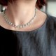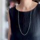 传统的钢丝项链虽然能维持良好的线条感,但此款项链采用丝线,将每颗宝石独立串连,并以独特的绳结工艺(all-knot)完成,少了钢丝的硬挺,多了份自在的垂坠感。