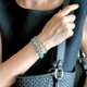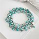 以小巧的立方体切割方式处理,一颗颗美国产的土耳其石,透过丝线等比例串连而成。