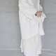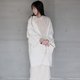 米白落肩和式外套 这款米色宽松和服外套选用来自日本的条纹压纹布料,质感细致、层次丰富,内里搭配提花纯棉面料,提升整体舒适度与细节质感。