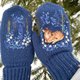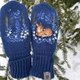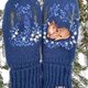 温暖柔软的手工手套与作者的刺绣。 纱线成分:羊毛30%,腈纶70% 刺绣是用棉线和羊毛线手工制作的. 尺寸是通用的 颜色是深蓝色