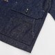 该夹克采用日本活性染色牛仔面料制成。与一般牛仔布料不同,此牛仔布采用活性染色工艺,确保优异的色牢度,无需担心水洗或摩擦时出现渗色。 它略显宽松,采用果实钮扣开合,胸前有内袋,两侧有双层口袋,佩戴者的左肘处有水仙花刺绣。 男女通用。