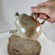 - 柴烧梨形茶壶,是属于紫砂壶中较经典款式。此壶以陶土手拉胚成形,金银彩,重落灰柴火,容量200ml.