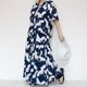 以和风的鹤纹印花,打造出线条优美的荷叶边长裙。