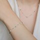珍珠品种: Akoya 日本珍珠 珍珠直俓: 5 - 5.5mm 珍珠形状: 正圆 珍珠品质: 高光,微瑕 手链材质: 18K金 配石: 绿松