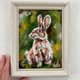 Rabbit oil painting Rabbit Art Framed painting Tiny painting Bunny artwork