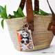 新款手袋吊饰,配有珍珠、珠子、熊猫和彩色丝巾。